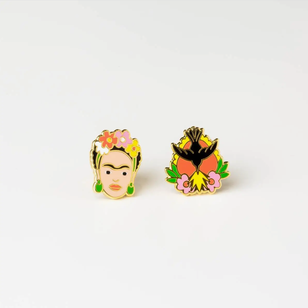 Presented in our original glass vial packaging these unique earrings blend a sense of gold glamour with a charming twist. The mismatched yet perfectly paired cloisonné petite studs are gilded in 22 karat gold and have hypoallergenic posts. Each earring is .5" (1.3 cm) or slightly smaller.