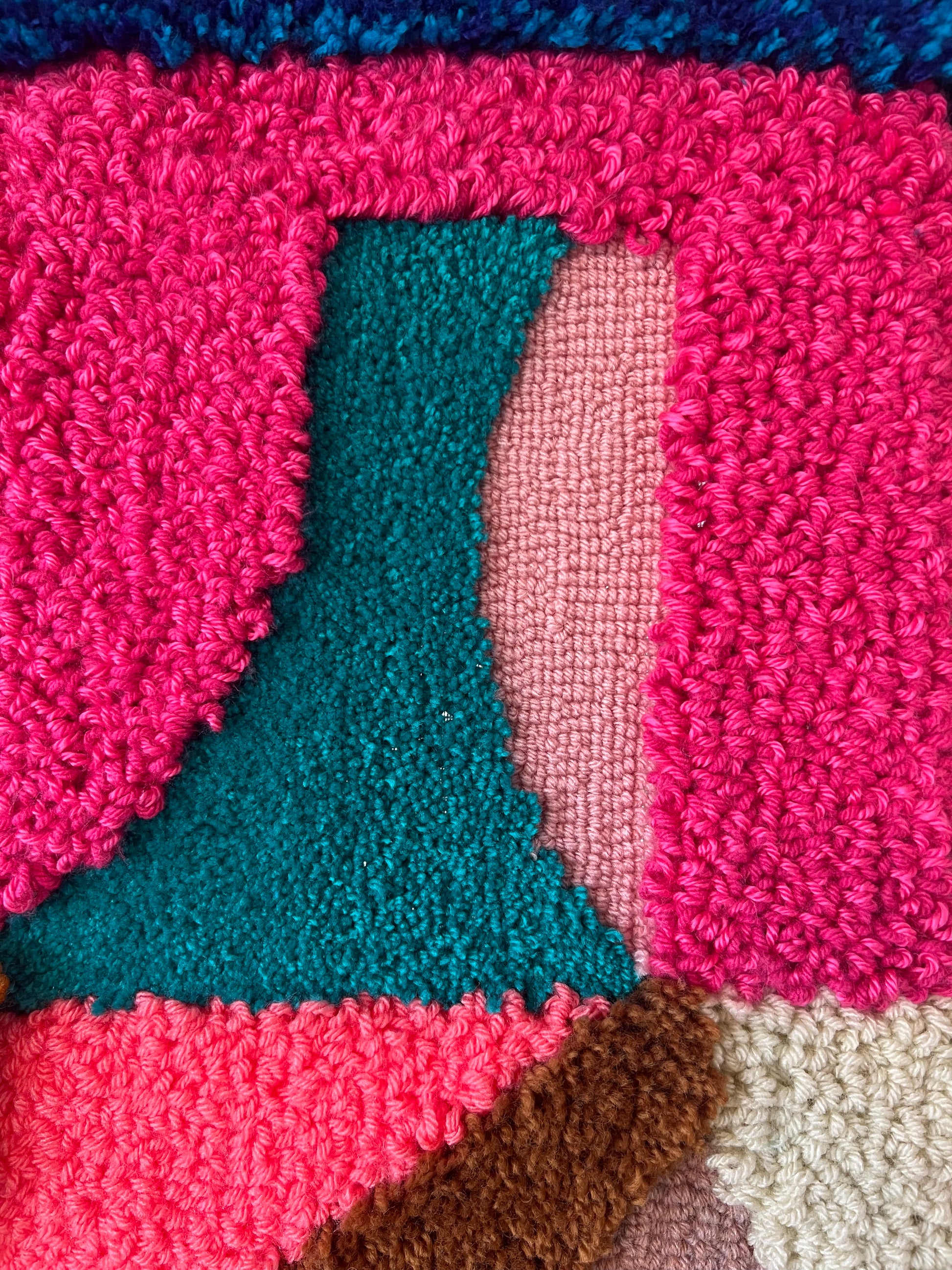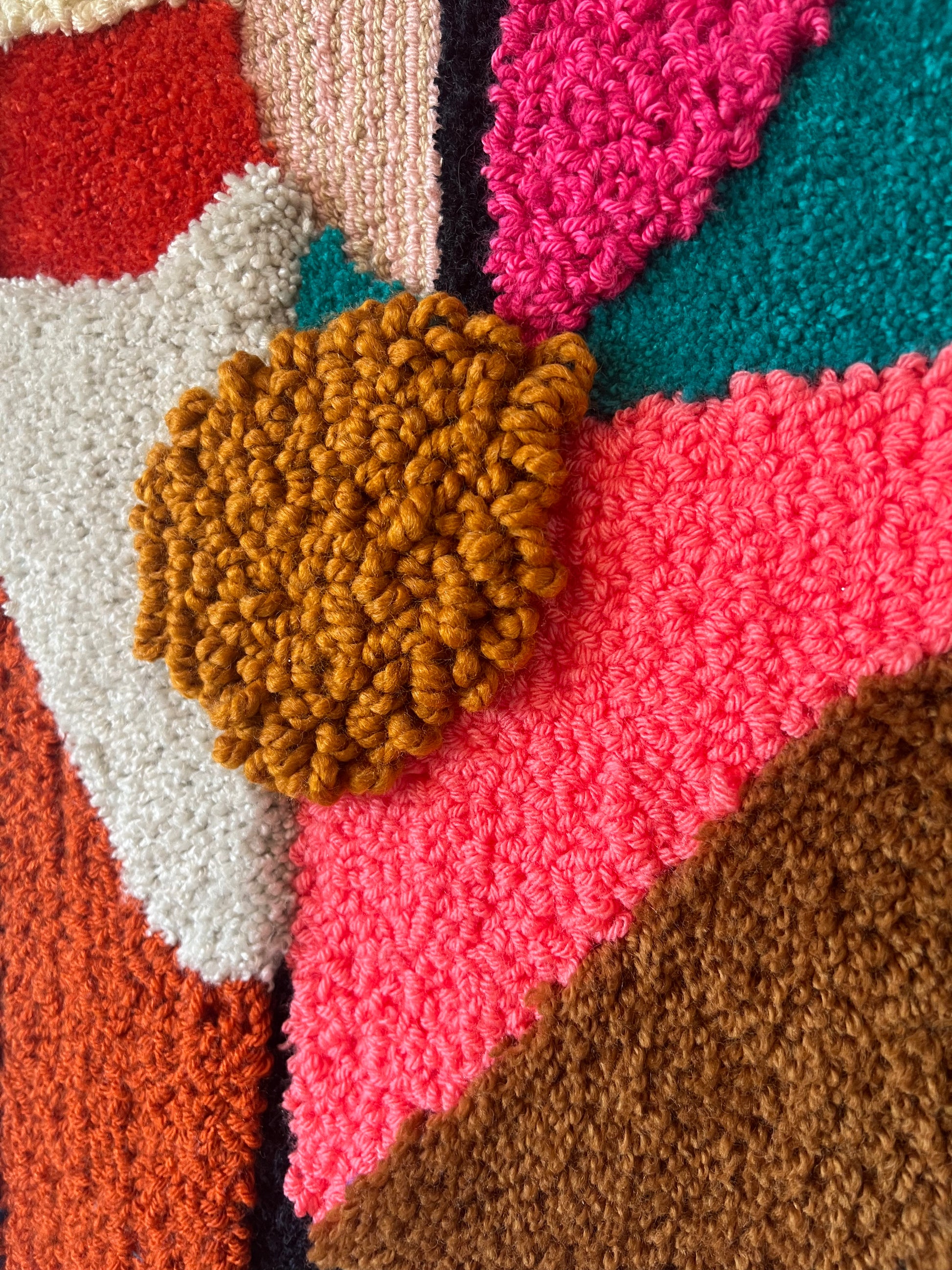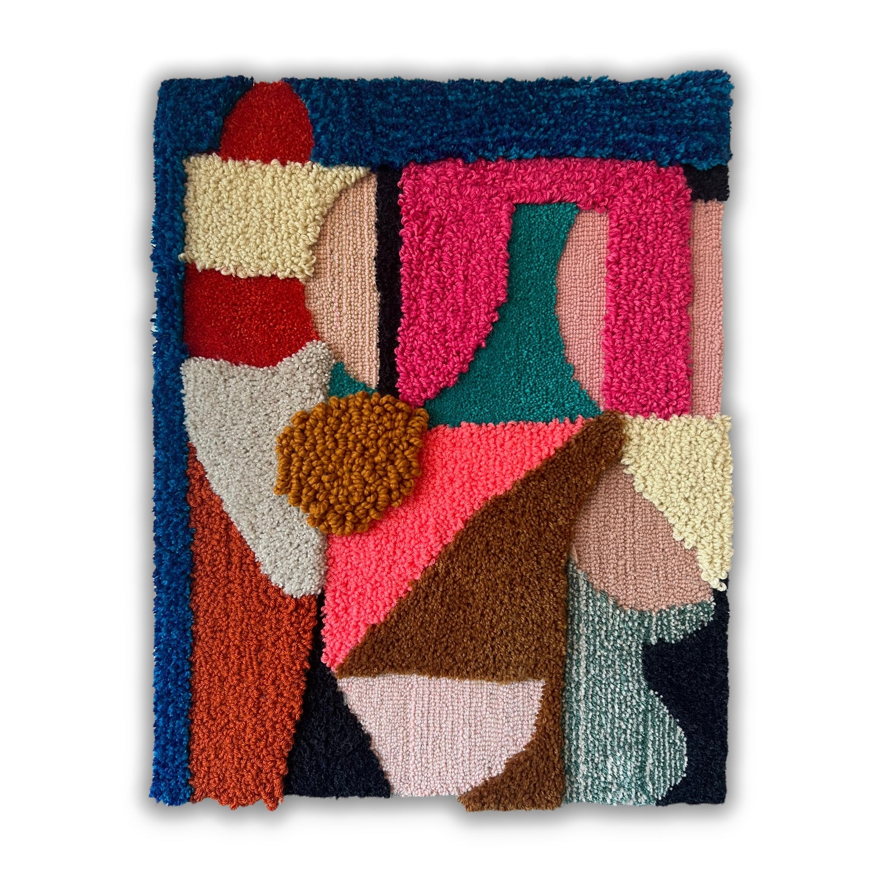 One of a kind original handmade tufted wall hanging. Made with a variety of yarns, acrylic and wool. Finished with a felt backing and D rings, ready to hang.