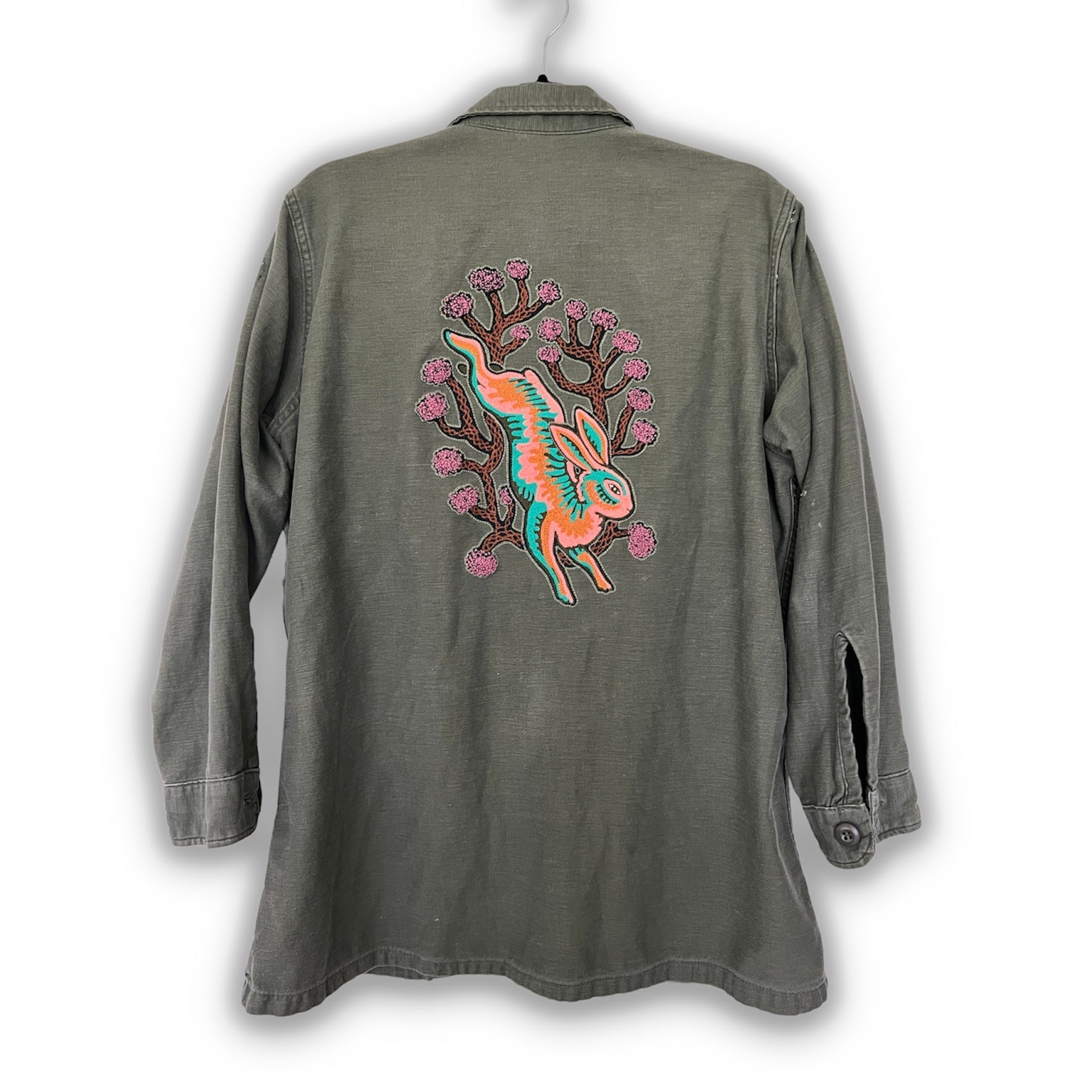 Pre-order. First image is the blank shirt that will be embroidered. Allow two weeks to ship. Vintage military button down shirt with chainstitch embroidery.