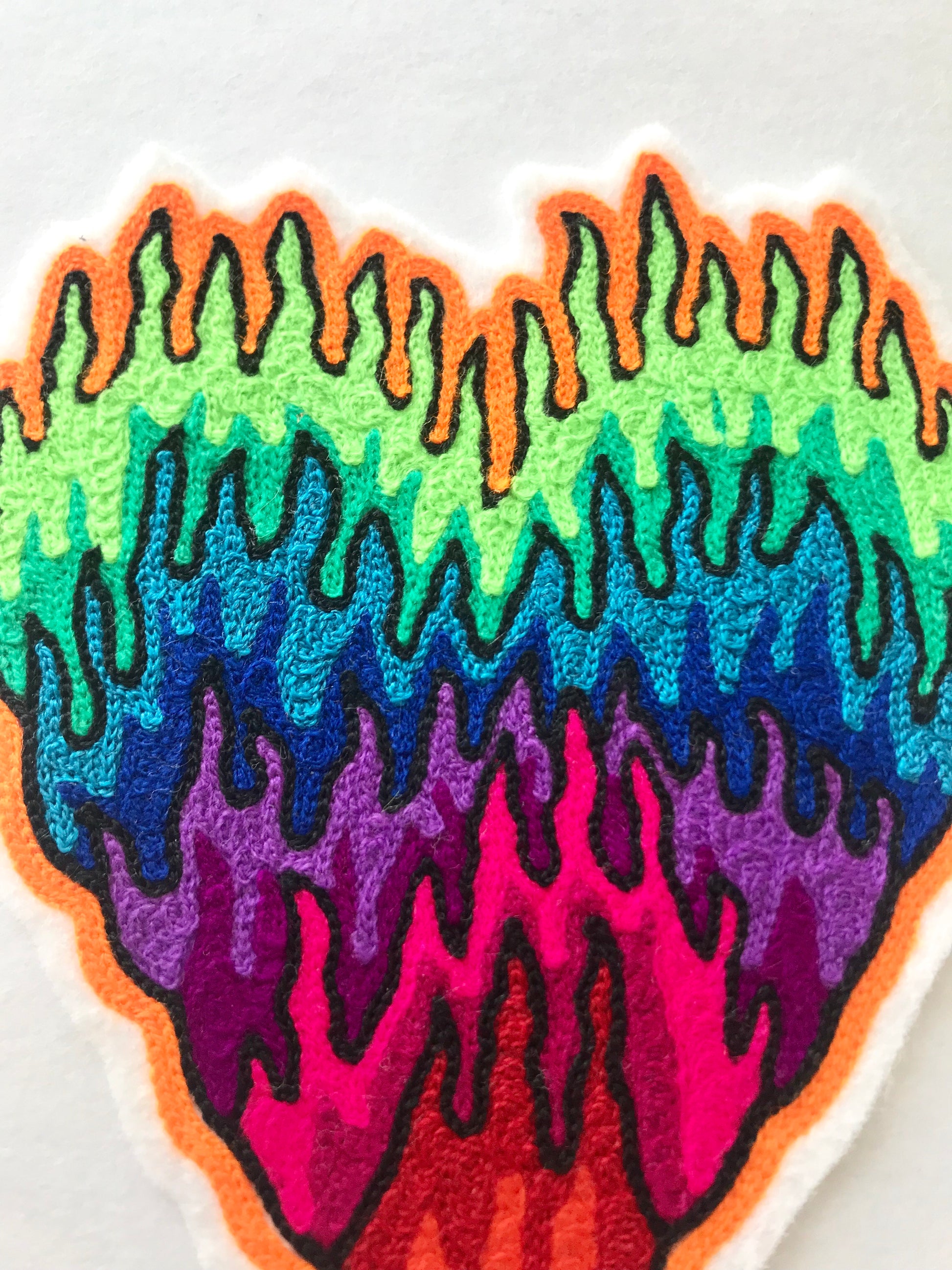 Chainstitch embroidered one at a time on hand guided antique machines.