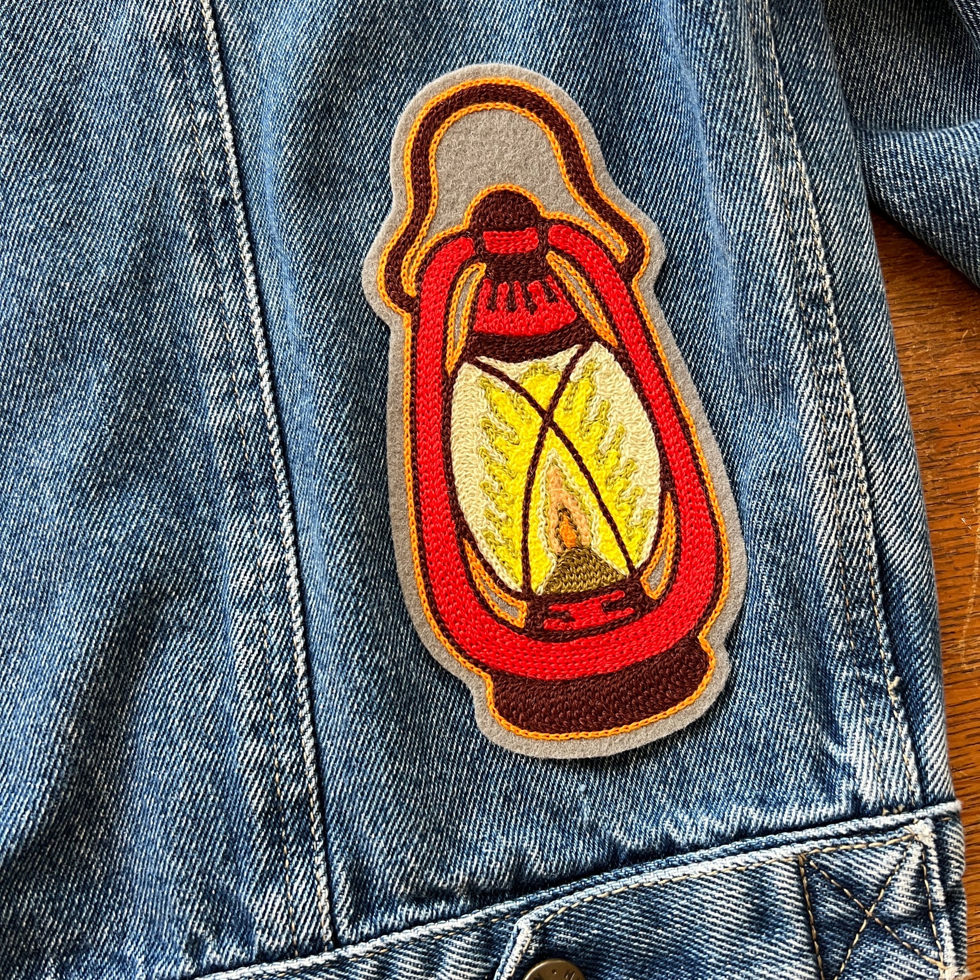 Handmade chainstitch embroidered patch. Made one stitch at a time on our antique embroidery machines. Size: 6" x 3.25"