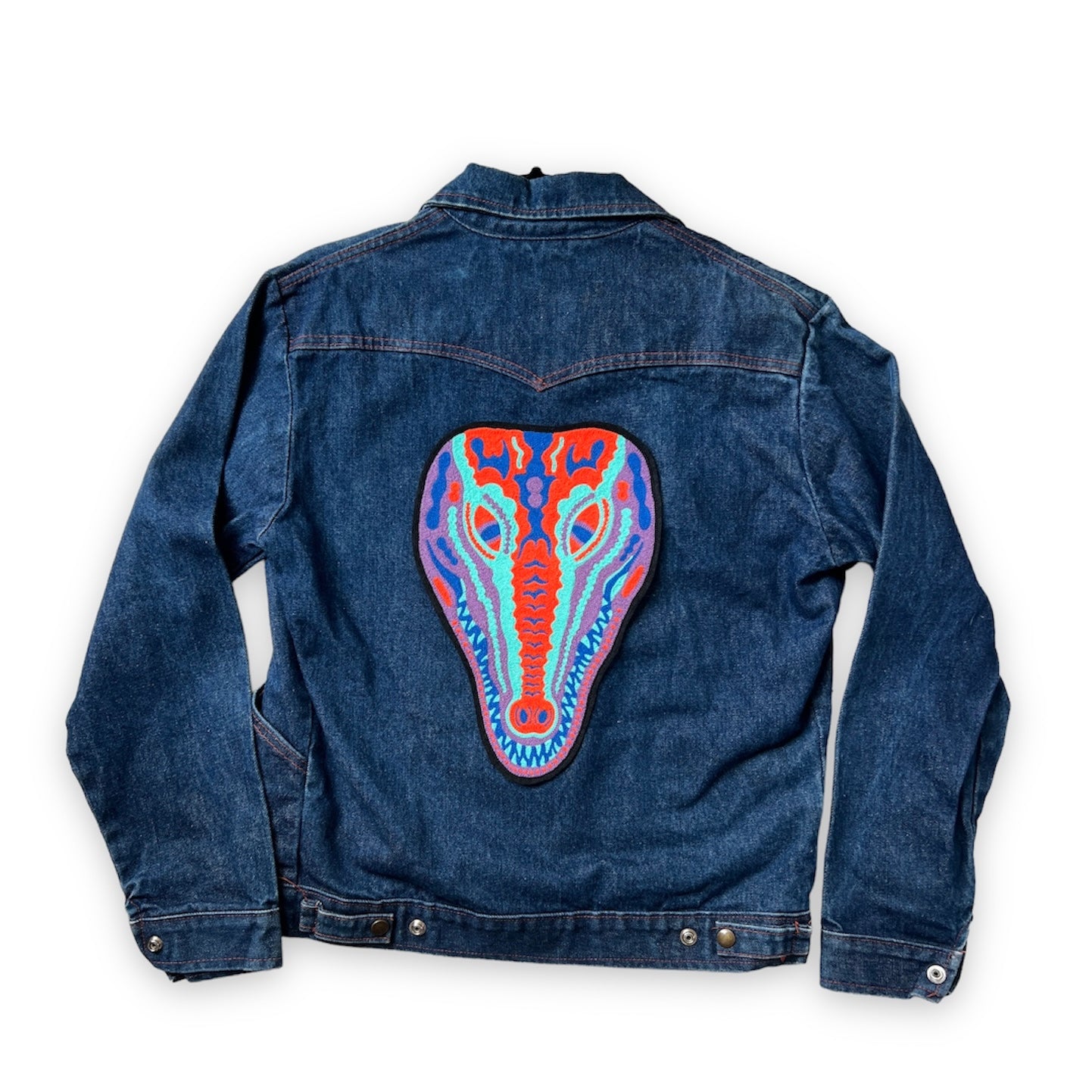 A collaboration with our friend Simone Thornton of @ real_gold. We translated Simone's vibrant illustrations into a limited run of one of a kind embroidered back patches. Handmade one at a time on our antique chainstitch machines.