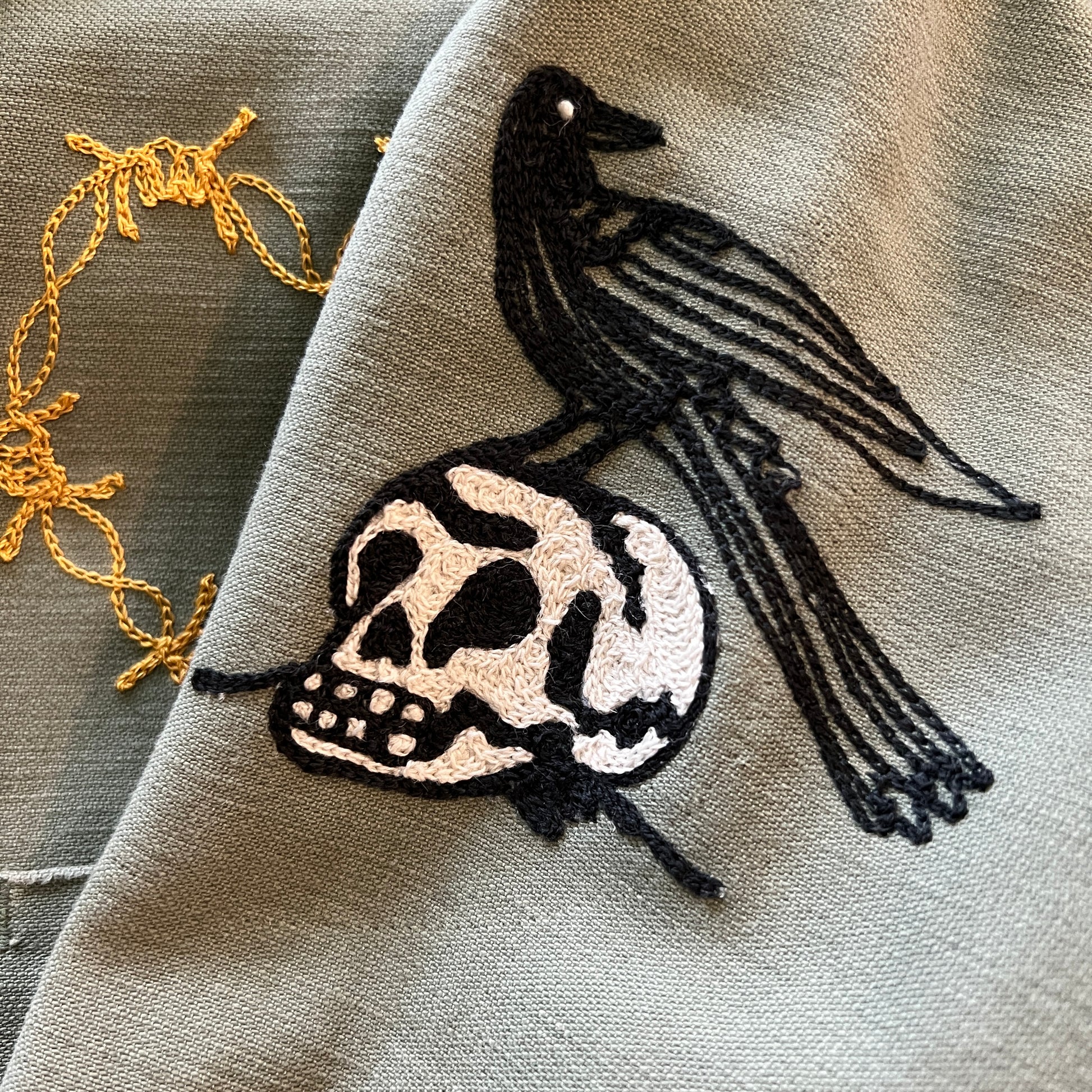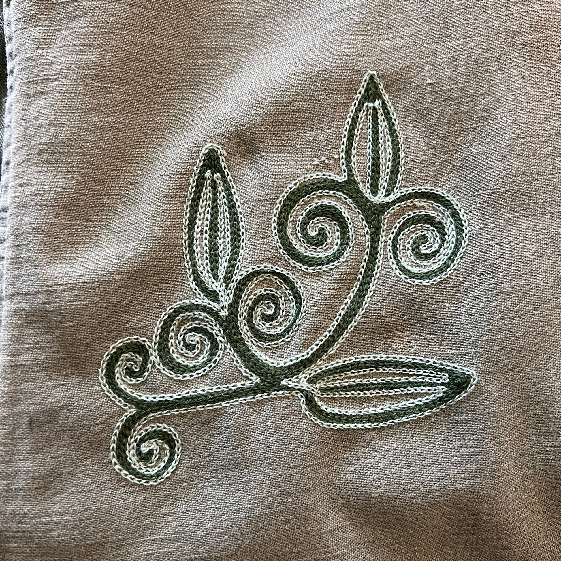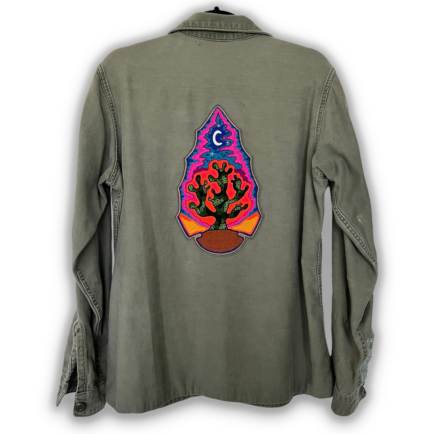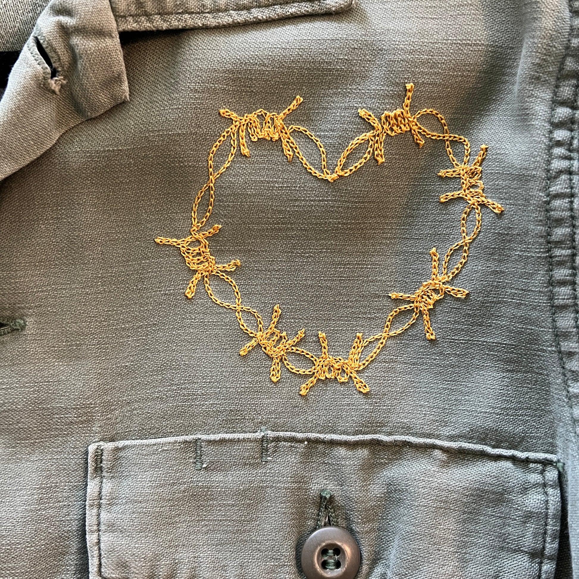 Vintage military button down shirt with chainstitch embroidery.